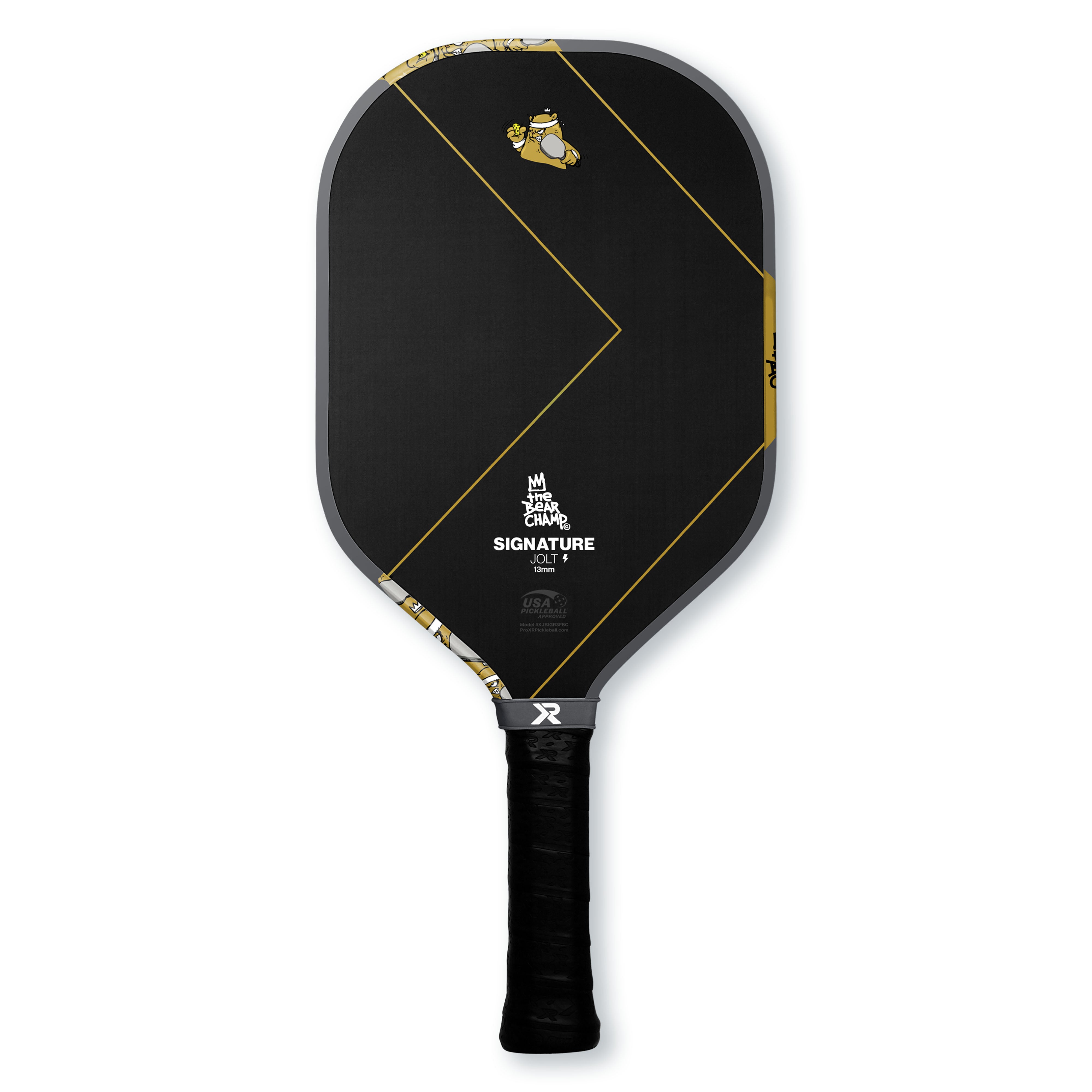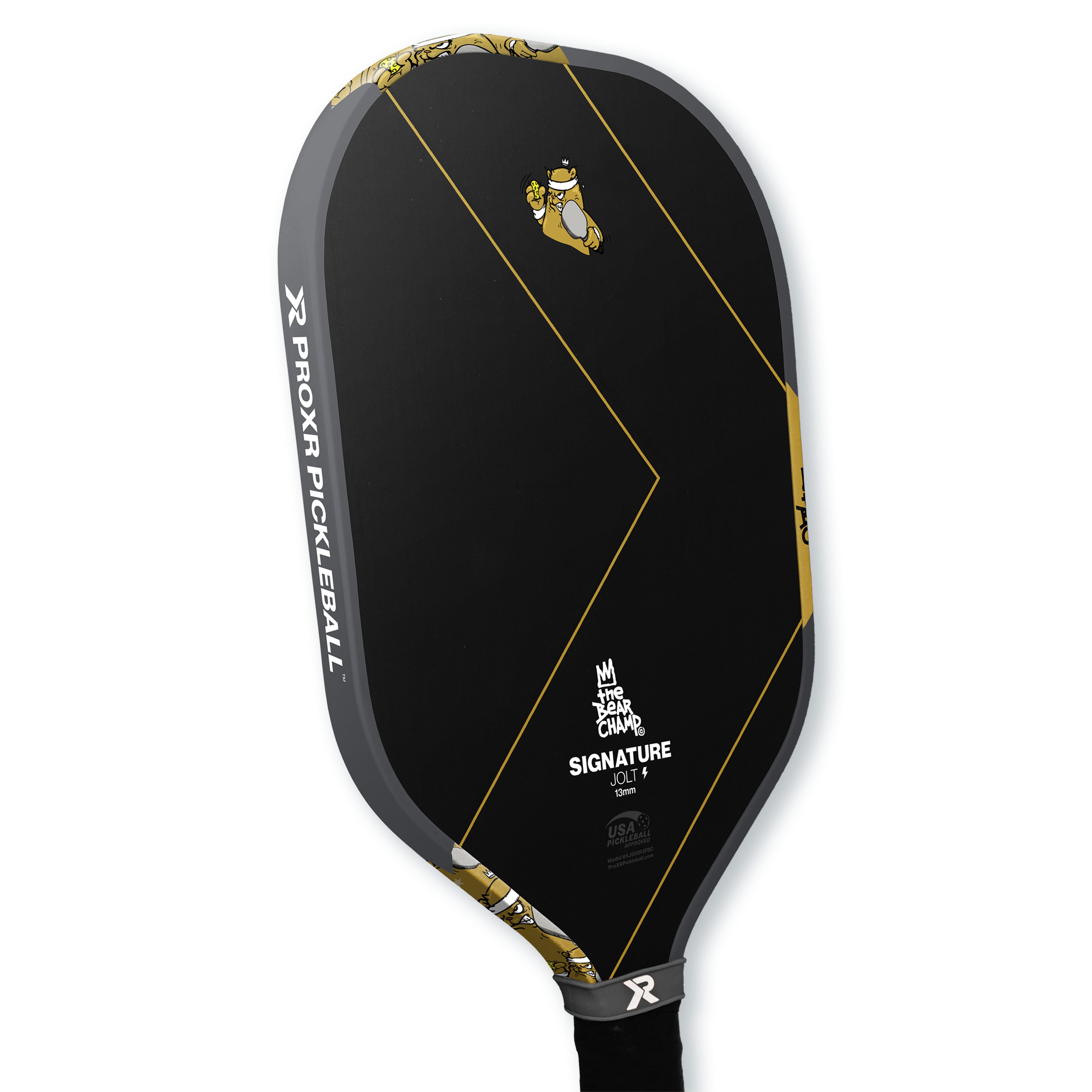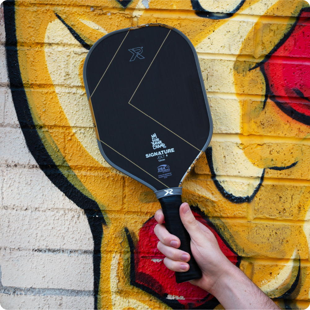Deliver a jolt of power they'll never see coming with the ProXR Jolt. Its Power Switch Core pairs a polypropylene honeycomb with our Perimeter Ring System - featuring Control Foam for touch and Aggression Foam for explosive put-aways. The Conductive Toray T700 Ultra-Raw Carbon surface bites the ball for insane spin and precision, while the Shock Arrestor Foam Edge Guard absorbs impact and extends paddle life. Shock the competition with the perfect surge of control and unstoppable power.